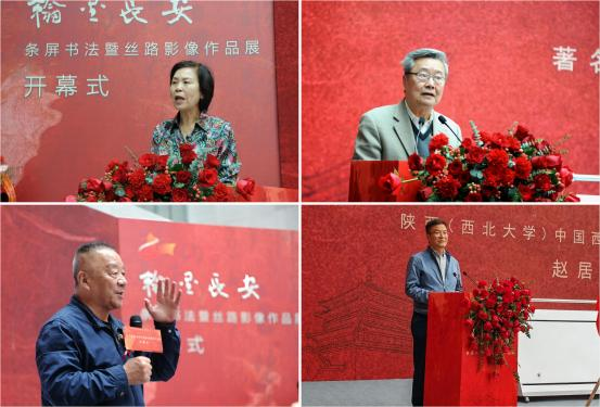 开幕式由陕西省广播电视台著名主持人银河主持。主要策展人赵居阳和祁旭东分别介绍了书展和影展的筹办情况。主办单位领导、陕西中国西部发展研究中心执行理事长李雪梅,省委原秘书长、省书协原常务副主席王改民,著名学者、评论家萧云儒,中国书协副主席张胜伟等领导分别致辞。省人大原副主任邓理宣布展览开幕。