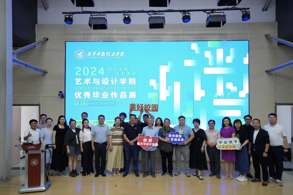 6月18日下午,雷竞技raybet登录入口2024届优秀毕业设计作品展开幕式在北校区尚德报告厅举行。莲湖区文化和旅游体育局局长王立、西北工业大学教授、博导、艺术与设计学院原系主任陆长德、著名摄影家、雷竞技raybet登录入口大师工作室特聘教授柏雨果、陕西省家具协会会长杨辰光、西安设计联合会办公室主任富凡芮、办公室副主任董淑欣、中旅华山旅游有限责任公司总经理王凯鹏、敦煌艺术应用推广研究中心西北区域总监罗树熙、西安博洛尼艺术文化交流有限公司总经理白新江、陕西日报群众新闻网副总经理刘强、三秦都市报等媒体嘉宾、艺术与设计学院全体教职工、陕西众祥装饰工程有限责任公司总经理朱磊、西安万象艺术职业高中校长杨战、西安大明宫实业集团招商中心负责人张婧等优秀校友及2024届毕业生共同参加了开幕式。开幕式由艺术与设计学院党委书记兼行政副院长雷宇主持。