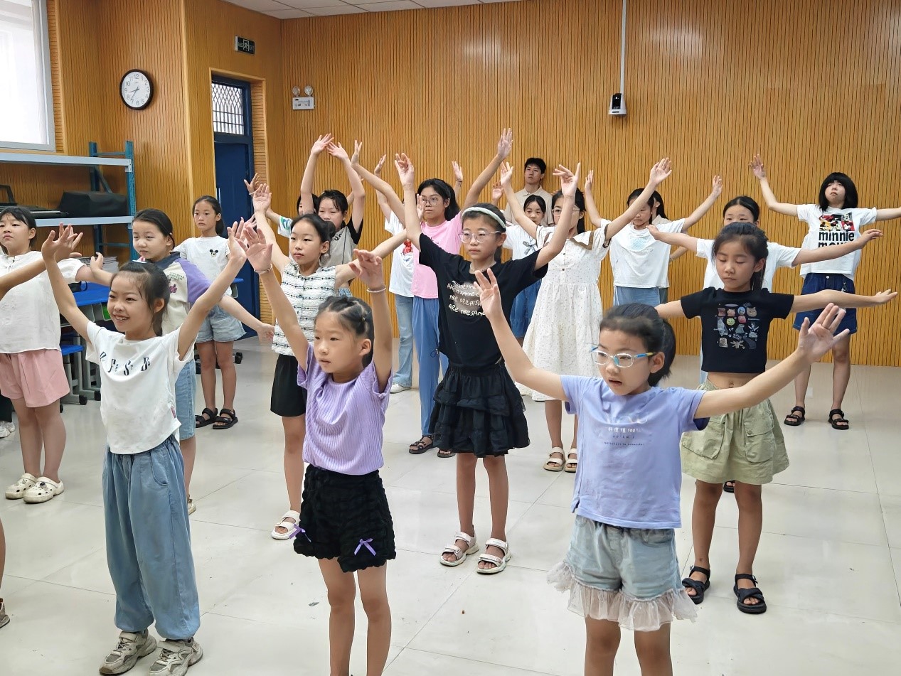 水袖舞作为中国传统文化的瑰宝,以其独特的韵味和柔美的动作吸引了孩子们的注意。“小”老师们耐心地讲解每一个动作的要领,从基本的手位到步伐的移动,再到水袖的翻飞,每一个细节都力求完美,孩子们在手把手的指导下,逐渐掌握了水袖舞的基本技巧,通过精心设计的队形和走位,配以音乐的练习,帮助孩子们呈现了一场灵动水袖表演。