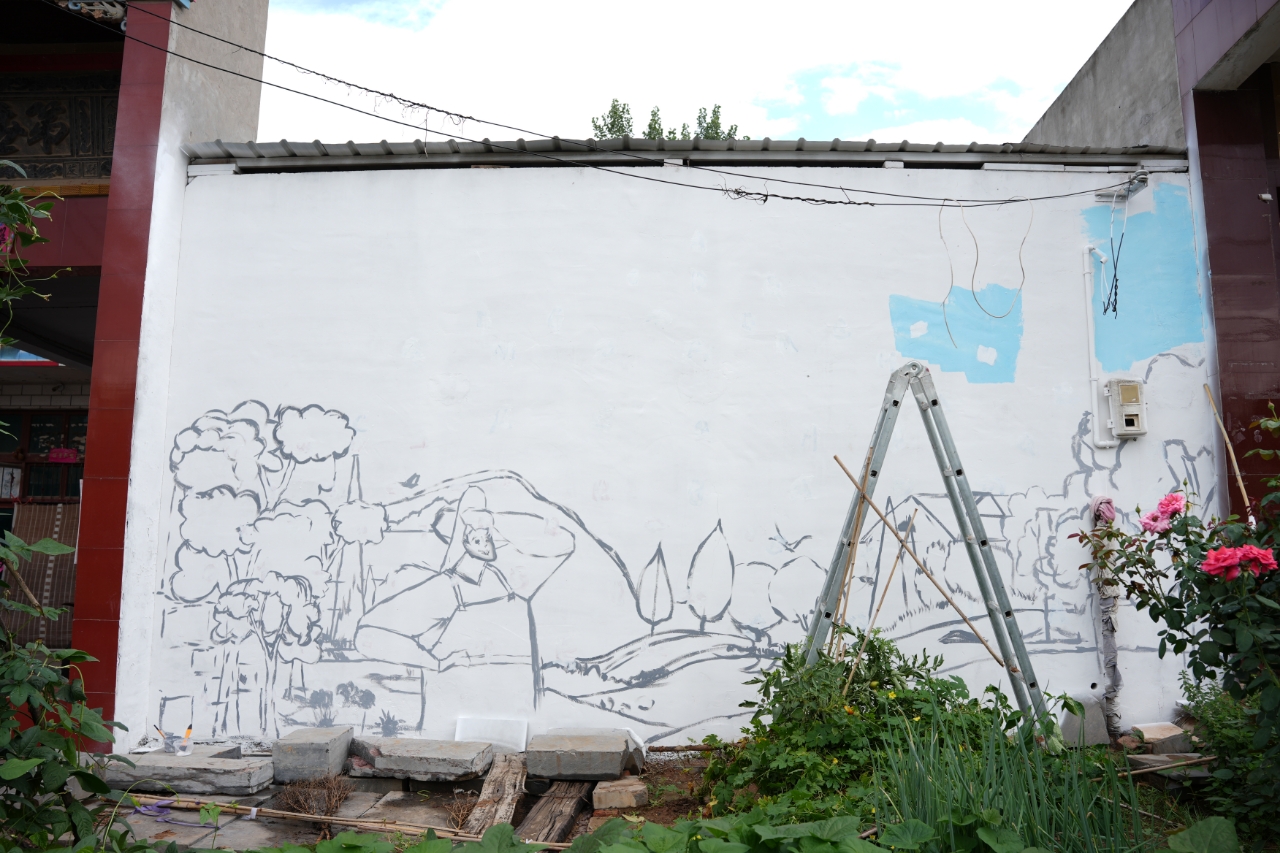“艺绘青春·助力新村”暑期社会实践墙绘队深入洛阳偃师夹沟村开展“建设美丽乡村”的墙绘工作。在深入了解村子的历史文化、乡土人情后,同学们根据“建设美丽乡村”的主题为村口的墙面定下拟画的初稿。