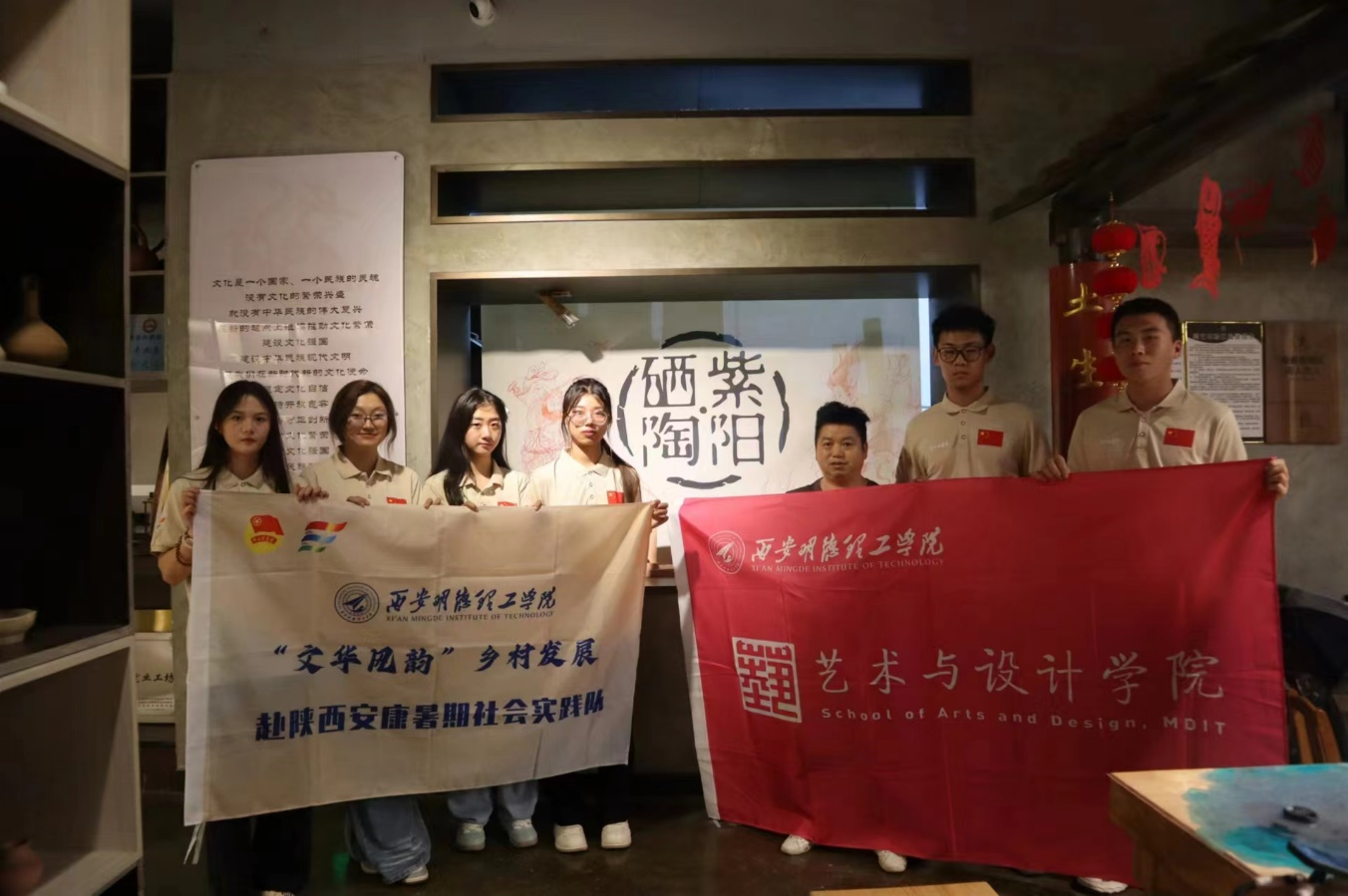 参观紫阳富硒茶陶博物馆是一次深刻的文化体验,让人对紫阳的非遗文化有了更加直观和深入的了解。学习制作陶艺的过程不仅增强了对传统工艺的尊重,还在动手实践中获得了独特的心灵感悟。参观博物馆的同时也让我们的队员体会到了富硒茶与陶艺之间的紧密联系,通过墙壁上对不同时期茶器及制作工具的历史的解说,深刻感受到了紫阳茶文化的深厚底蕴。