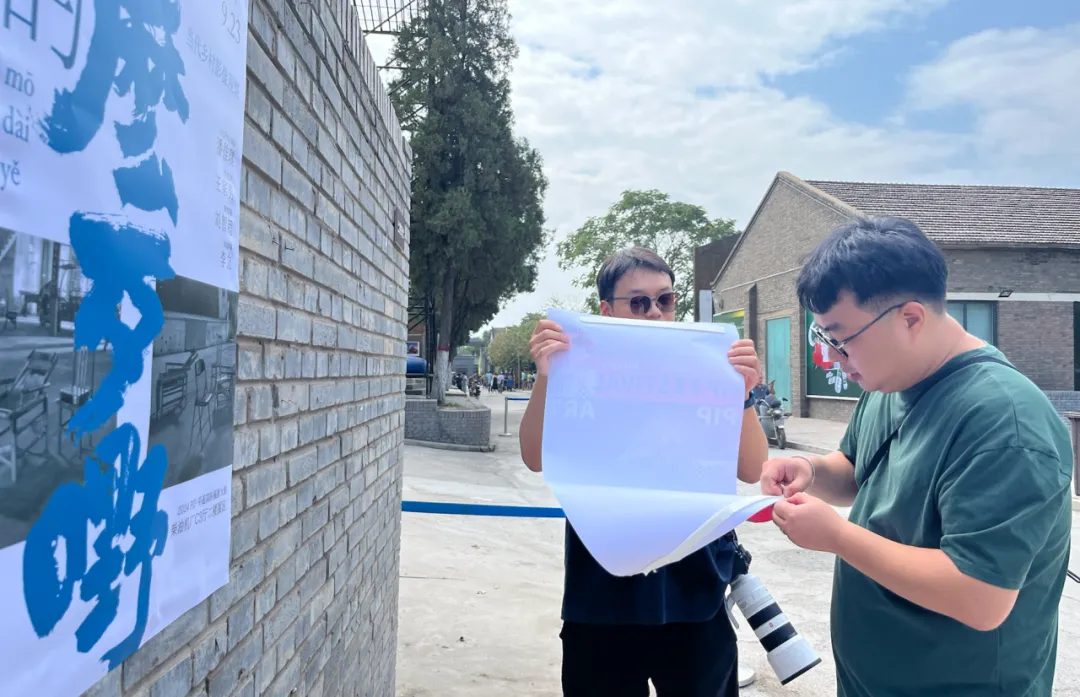 我院参展师生在院校展巨型海报前打卡