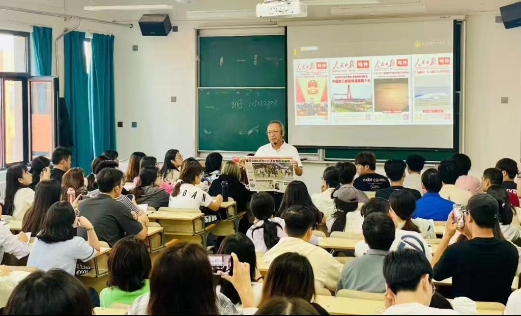 在公开课中,衡国良教授将自身丰富的行业经验与深厚的学术底蕴完美融合,打造了一堂亮点纷呈的示范课。他首先以高屋建瓴的视角,对本学期课程的理论框架、学习要点、考核要求等进行了全面而深入的剖析,为学生构建了清晰的学习蓝图。随后,通过展示一系列精心挑选的重大事件摄影作品及报纸号外,他引导学生们深入体会摄影的社会价值与艺术魅力,激发了学生们的学习热情与探索欲望。