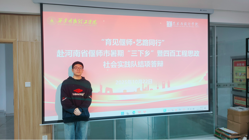 答辩过程中,各实践队以PPT汇报形式,从实践背景、调研过程、成果产出、思政感悟等方面展开阐述,生动呈现了实践中的探索与收获。其中,像“啡遗文脉·青衿致远”赴河南省巩义市实践队,深挖当地非遗文化与咖啡产业的融合点,以设计赋能传统文化传播;“育见偃师·艺路同行”赴河南省偃师市实践队,结合专业特长开展美育帮扶与文化调研,用艺术点亮乡村教育;“青春逐梦·情系青岛”赴山东省青岛市实践队,聚焦城市文旅与海洋文化,通过创意设计为地方发展注入青春活力。20支团队紧扣“四百工程”思政教育要求,将专业所学与基层需求深度融合。