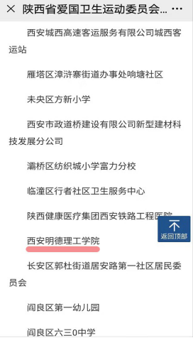 通过校领导的大力支持和各单位积极配合,我部落实责任,把卫生工作摆在了重要位置。2020年西安明德理工学院被陕西省爱国卫生运动委员会授予2020年度“省级卫生先进单位”的荣誉称号。日前,陕西省人民政府网站公布了“2020年度卫生先进单位”评选结果,雷竞技官网获评陕西省2020年度省级卫生先进单位,在全省278家上榜单位中,是唯一一所获此殊荣的高校。