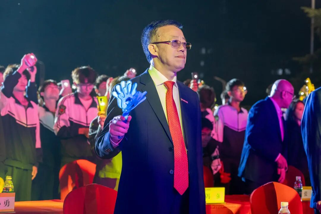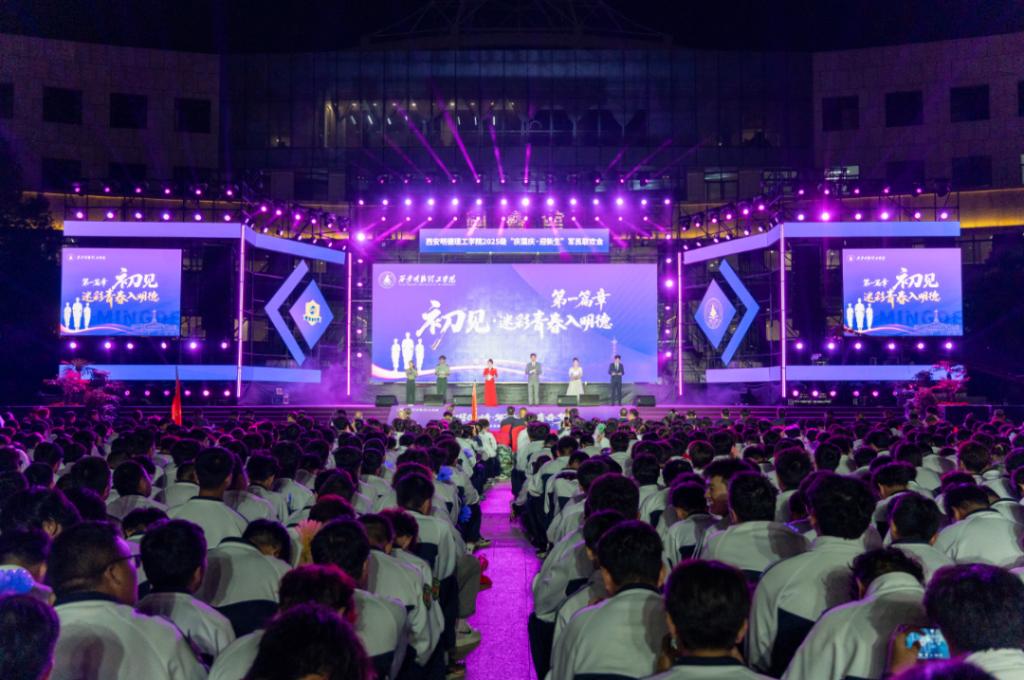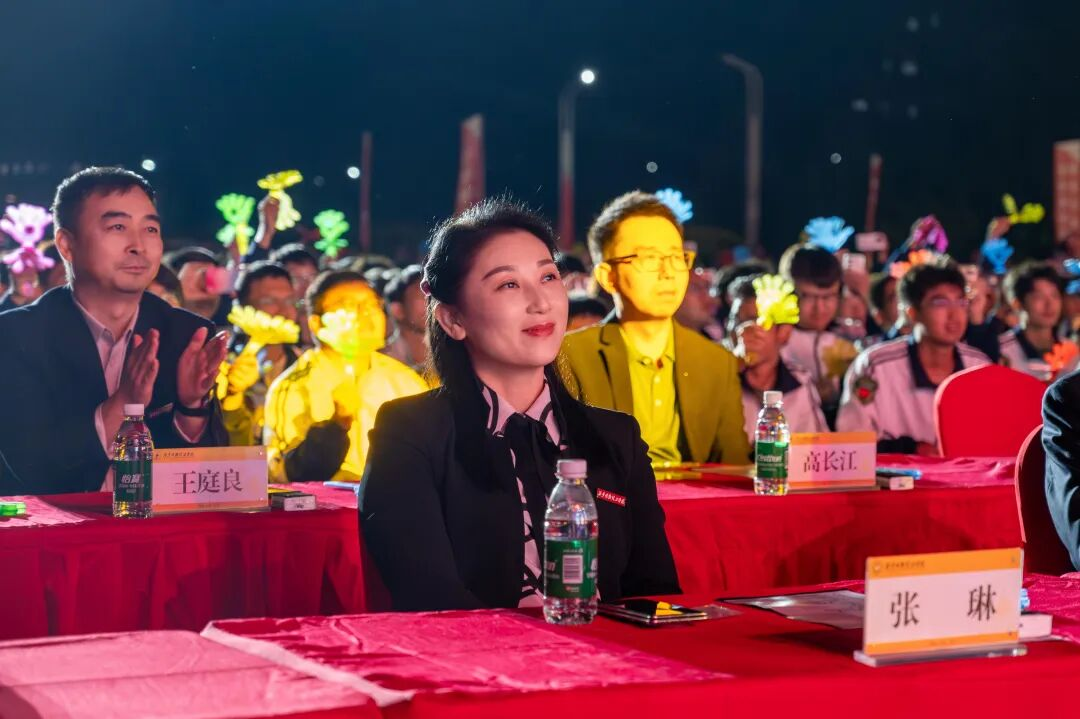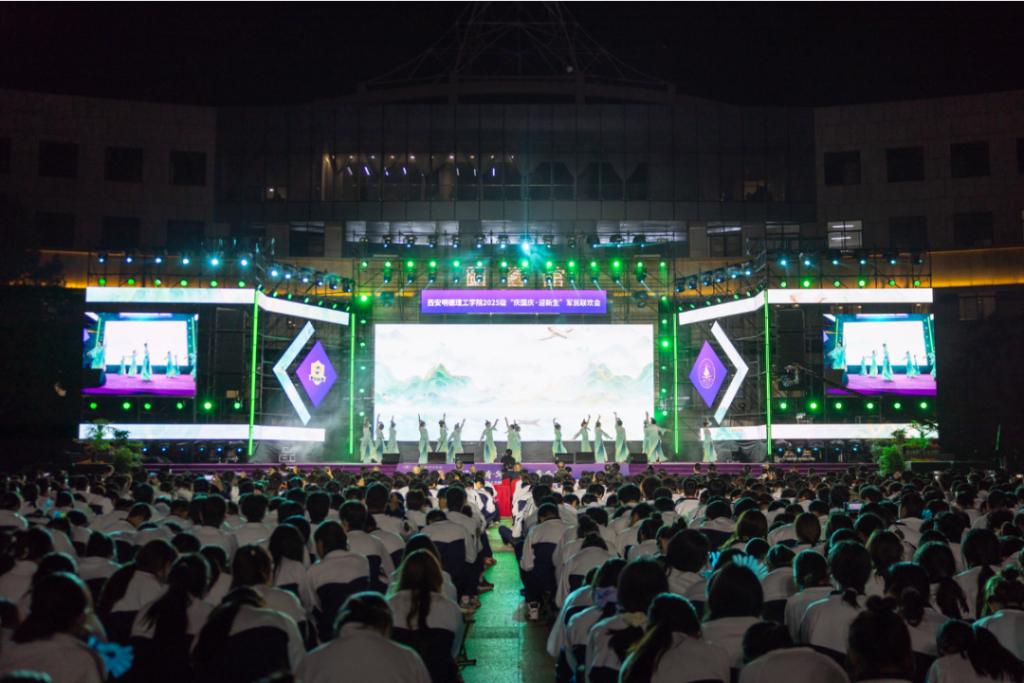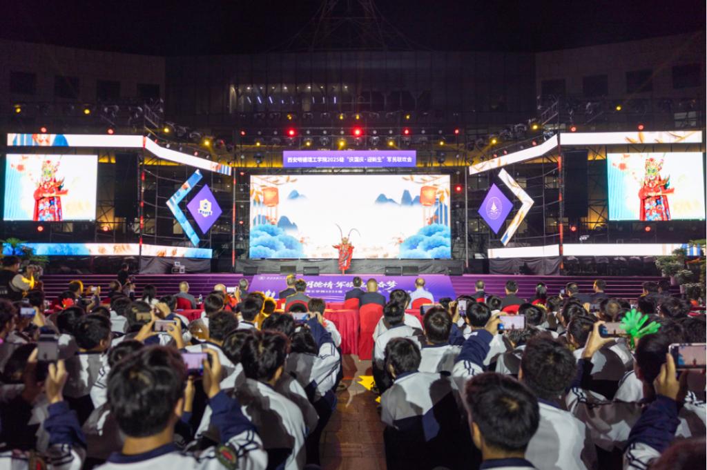 9月19日晚,“明德情·军旅魂·青春梦”2025级“庆国庆·迎新生”军民联欢会在学校中心广场盛大举行。陕西金叶科教集团董事局主席、总裁,明德源教育集团董事长、总裁,学校董事长、执行校长袁汉源,陕西金叶科教集团监事会主席冯卫平,陕西金叶科教集团董事王毓亮,陕西金叶科教集团副总裁秦忠,陕西金叶科教集团副总裁陈宏团,陕西金叶科教集团财务总监熊汉城,明德源教育集团常务副总裁、学校副董事长、执行董事张琳,学校校长王志刚,学校党委书记马川鑫,以及明德源教育集团领导、全体校领导,学校各职能部门、教辅单位、二级学院领导,全体军政干部、2025级全体学生、家长代表参加此次晚会。
