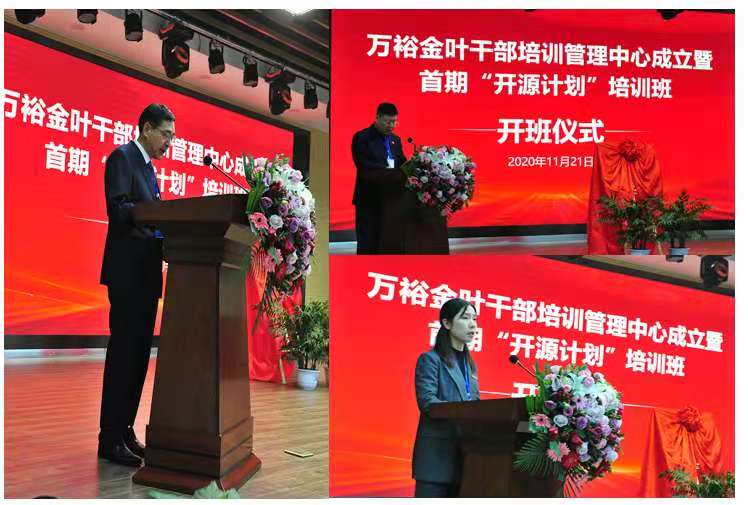 著名企业家、万裕集团董事长、金叶集团董事局主席兼总裁、雷竞技raybet登录入口董事长袁汉源先生在典礼上发表重要致辞,就贯彻集团公司整体战略规划和中长期人力资源规划发展目标,培养“专业化、职业化、高素质”的干部队伍作了动员,对成立万裕金叶干部培训中心和强化人才培养、提升干部综合素质寄予厚望。