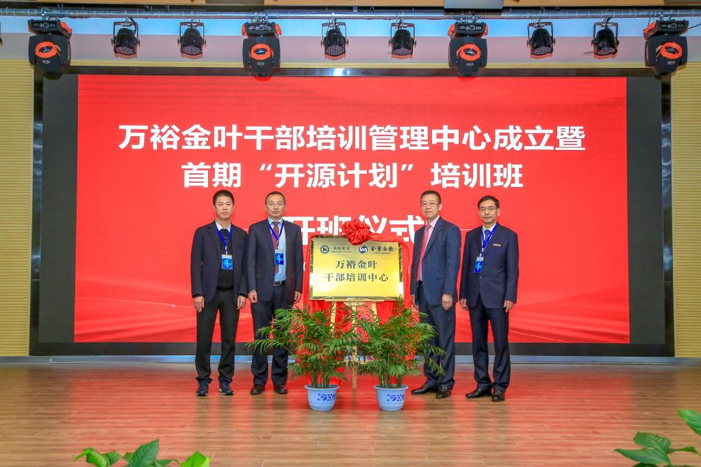 11月21日-22日,万裕金叶干部培训中心成立暨首期“开源计划”培训班在学院建德楼隆重举行。著名企业家、万裕集团董事长、金叶集团董事局主席兼总裁、雷竞技raybet登录入口董事长袁汉源先生,金叶集团副总裁秦忠,瑞丰新材料科技集团总裁袁汉辉,雷竞技raybet登录入口党委书记、代理院长杨健君共同为万裕金叶干部培训中心揭牌。金叶集团、万裕集团及下属各成员单位140余名中高层经营管理人员见证中心揭牌成立暨首期“开源计划”培训班开班典礼。典礼由雷竞技raybet登录入口党委书记、代理院长杨健君主持。