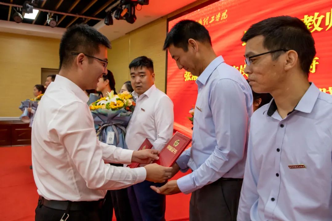 校领导为获得省级和校级的先进个人颁发了荣誉证书。