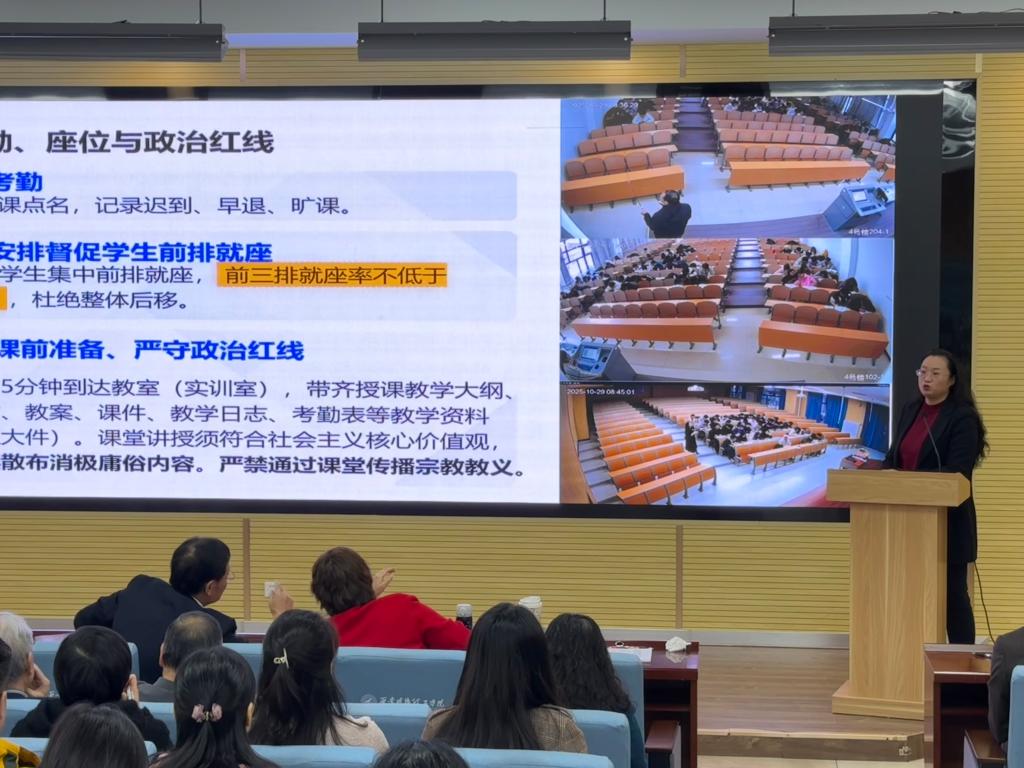 会议伊始,刘勇副院长从课堂教学规范、教学资料规范性、课堂管理责任落实等方面进行了全面部署。刘勇指出,学院将继续采用“学院自查+学校抽查”的方式,重点聚焦课堂教学状态、实验实训教学、教学资料“五大件”准备、教学管理规范等进行系统检查。