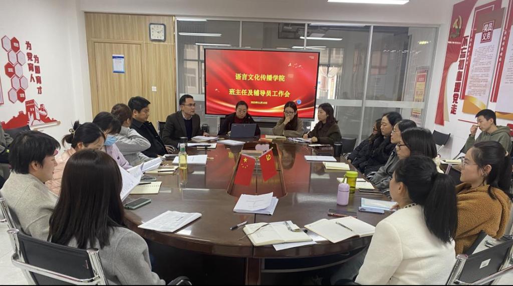 11月10日,语言文化传播学院召开2022级、2023级班主任及辅导员工作会议,学院党委书记赵旭东、副院长刘勇,2022级、2023级班主任、辅导员参加了会议,会议由学院党委副书记杨峰主持。