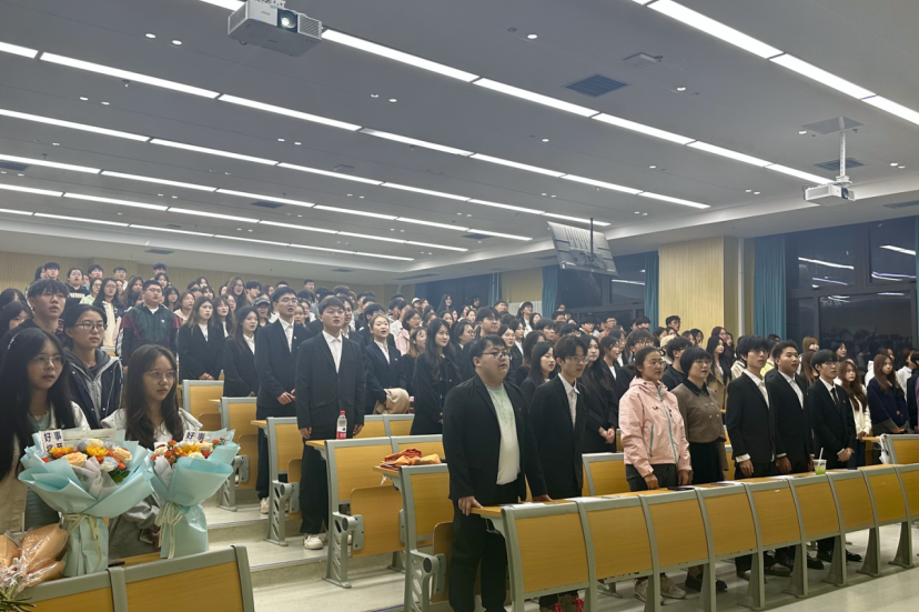 大会伊始,全体参会人员肃立,齐唱中国共产主义青年团团歌《光荣啊,中国共青团》。激昂的旋律回荡在会场,歌词中“用青春拥抱时代”“用生命点燃未来”的信念,不仅唤醒了在场学子的青春使命感,更展现出经管院青年积极向上、勇担使命的精神风貌,为大会奠定了庄重而富有活力的基调。