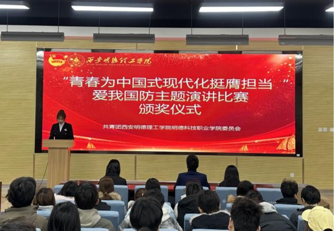 青春声浪里,是护国的赤诚,领奖台上,是担当的模样。12月3日,明德科技职业学院“青春为中国式现代化挺膺担当”爱我国防主题演讲比赛颁奖仪式顺利举行,学院团委书记郭庆、窦旸,辅导员吴秋月,以及入党、入团积极分子齐聚一堂,共同见证这场青春与国防的双向奔赴。