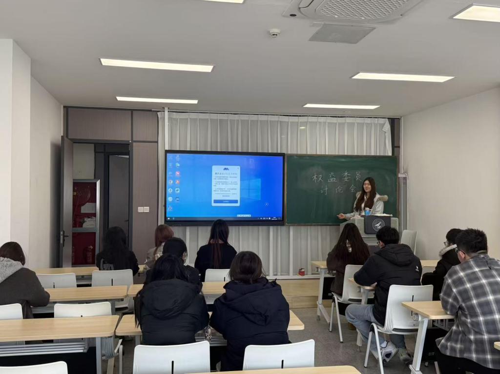 各班权益委员在会上分享了工作经验,并就失物招领、食品安全、生活服务等常见问题进行了交流,明确了各自的工作职责。大家表示,将从同学身边的具体事务入手,协助推动实际问题的解决。