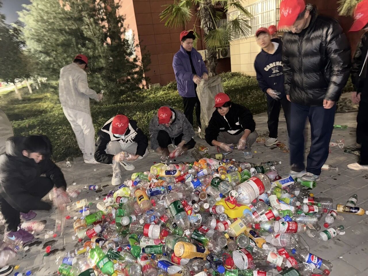 活动伊始,各部门负责人带领志愿者迅速行动,按照提前划分的区域前往各宿舍开展集瓶工作。志愿者们手持收纳袋,耐心与同学们沟通活动目的,不仅高效收集了各类空瓶,更传递了环保的公益理念,得到了同学们的积极响应与热情支持。