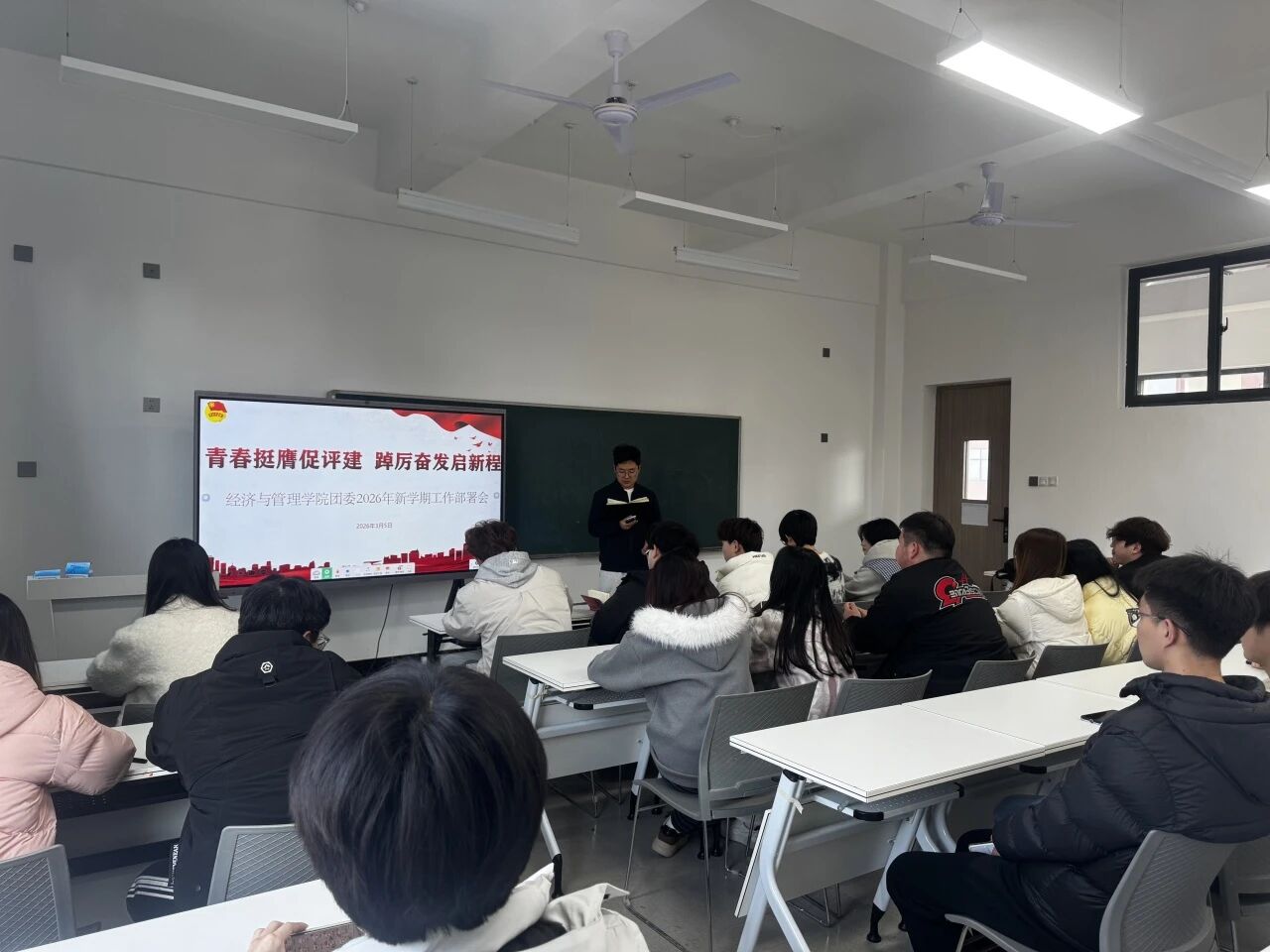 此次会议全面梳理了新学期工作任务,进一步明确了目标、压实了责任,为学院团学工作有序开展奠定了坚实基础。下一步,经济与管理学院团委学生会将以此次会议为指引,紧扣工作重点、细化落实举措、强化责任担当,以务实的作风推进各项工作落地见效,持续提升团学工作质量与水平,助力学院育人工作高质量发展。