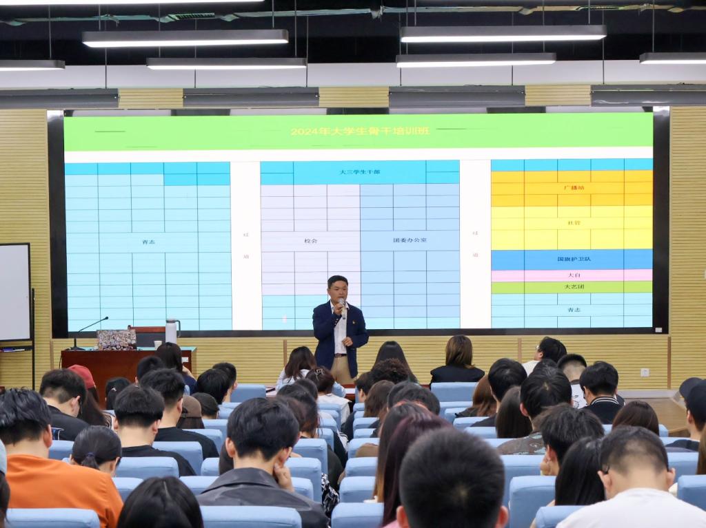 为深入学习贯彻习近平新时代中国特色社会主义思想和党的二十大精神,引领大学生骨干提高对志愿服务的理解和实践能力,提升学生组织力、凝聚力及社会责任感,学校团委于2024年4月11日在建德楼202报告厅开展了2024年春季学期大学生骨干培训班第二期。此期培训由艺术与设计学院团委书记兰艳主讲,主题为《新时代高校志愿服务项目设计与实践》,校团委副书记乔建、校院团学骨干近200名师生参加此次培训。