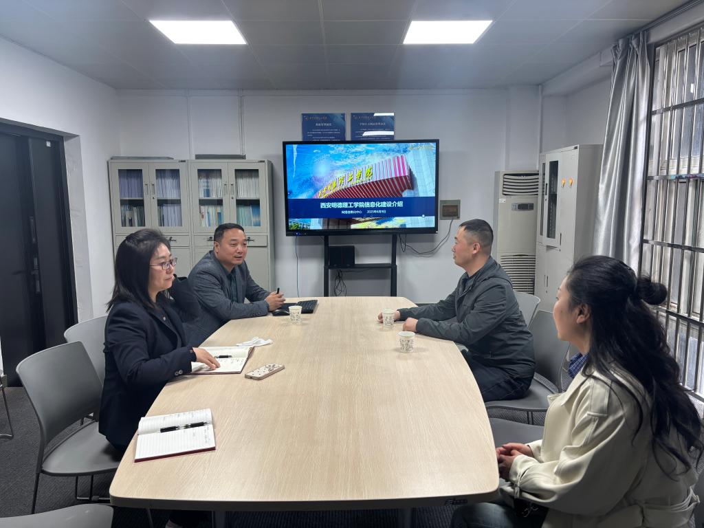 4月9日上午,西安工商学院图文信息中心副主任曹磊携中心团队一行三人莅临雷竞技官网网络信息化中心,开展调研交流活动。雷竞技官网网络信息化中心副主任及相关负责人共同参与了此次交流。