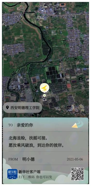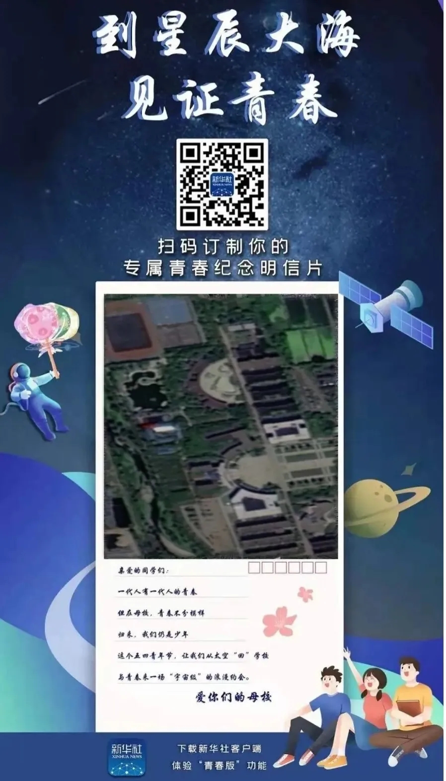 后台将实时生成搭载“青春之旅”的卫星明信片