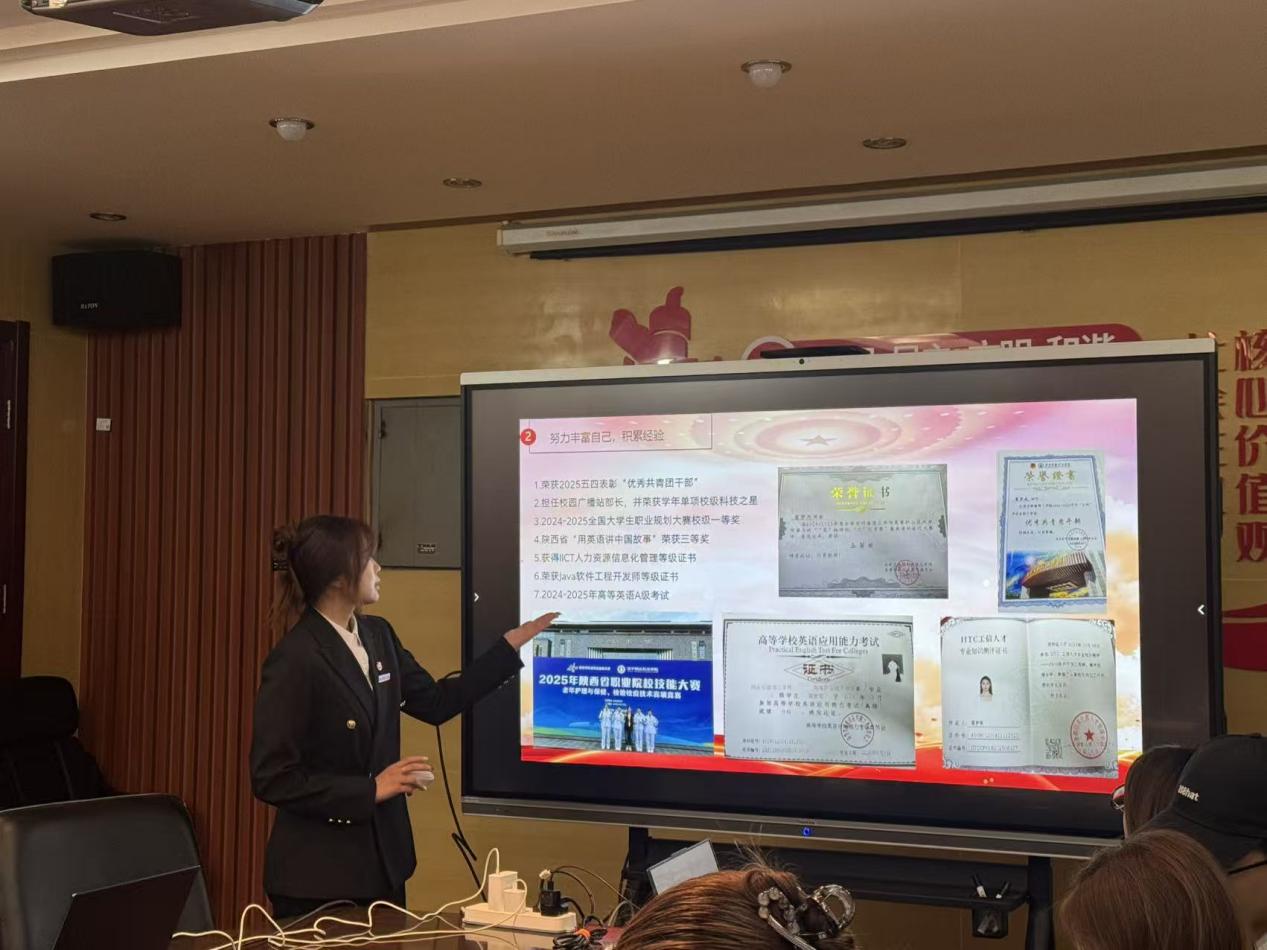 汇报环节中,发展对象紧扣个人成长轨迹、理论学习收获及社会实践感悟展开陈述,重点阐述对党的认识、入党动机及未来规划。评委团围绕理想信念、责任担当等维度提问,既肯定发展对象的进步与成长,也针对理论深度、实践结合度等提出改进方向。郭庆老师勉励大家“以行动践行初心,用实干担当使命”,李艺萌老师强调“要始终对标党员标准,在服务中锤炼党性”,现场互动热烈,思想交锋深刻。