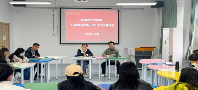 为培养学生在大学期间自尊自信和积极向上的生活态度,促进学生心理健康素质、思想道德素质、科学文化素质协调发展,帮助学生更好地适应大学生活及环境,不断提升高等职业技术学院全体辅导员工作业务能力,有针对性地开展心理危机筛查与干预工作,助力学生成长。在高等职业技术学院党总支书记、副院长王庭良的组织下,5月26日,我院全体学生工作干部在心理咨询中心203室听取了薛飘老师关于“心理危机筛查与干预知识专题培训”讲座。