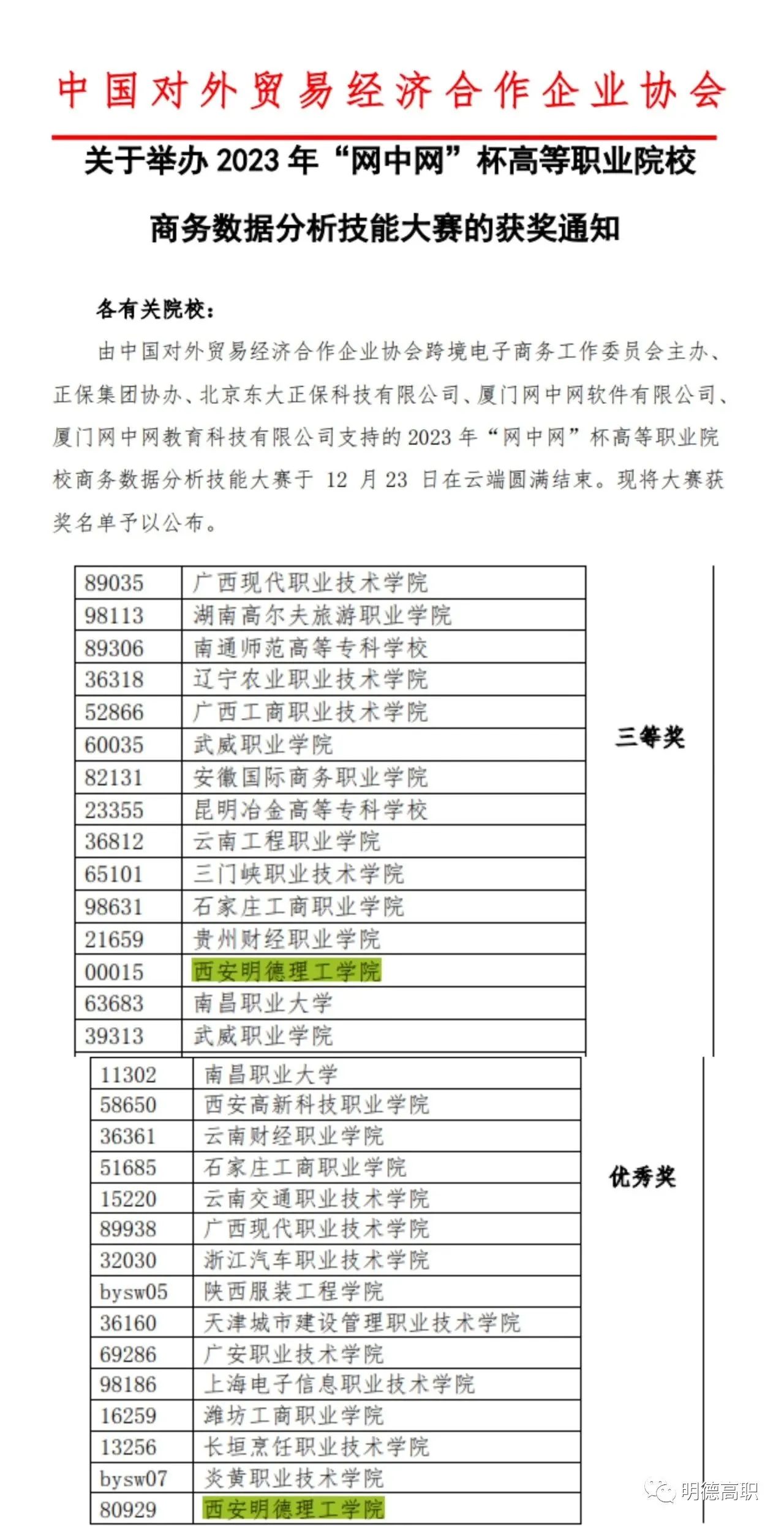 近日,2023 年“网中网”杯高等职业院校商务数据分析技能大赛国赛结果已公布:我院学生荣获三等奖、优秀奖各一项。