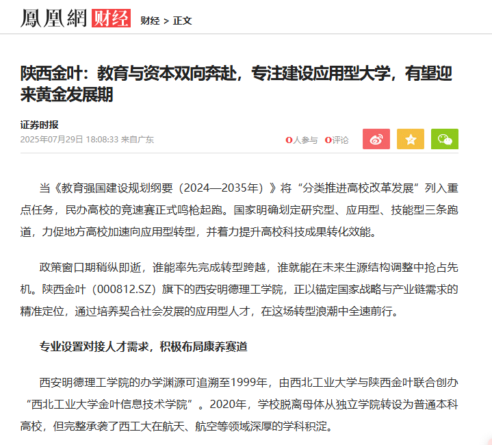 高校转型从来不是教育部门的独角戏,资本、产业、政策的共振才能放大乘数效应。在陕西金叶涵盖教育事业、烟草配套产业、医养产业的商业版图中,教育事业是具有长期成长性的业务。