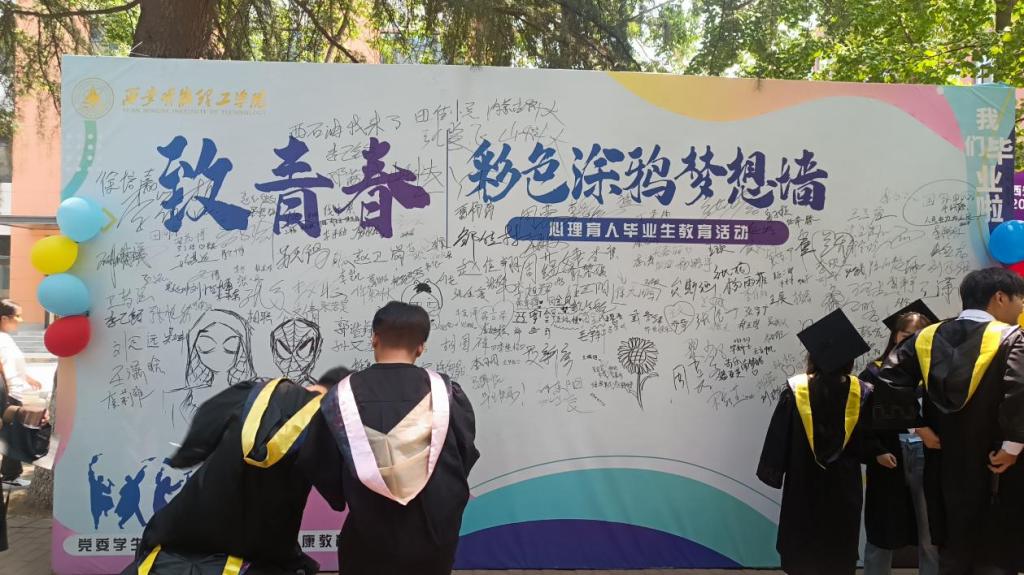 本次活动坚持时代性、思想性、文化性和趣味性的原则,借助表达性艺术、民间套圈游戏、创意广告等方法,聚焦学生的需求和个性特点,搭建了“致青春”彩色涂鸦梦想墙,印制了蕴含“三生教育”元素的创意贴纸,发起了教职员工为毕业生赠予手写贺卡和毕业生为老师回赠AI祝福图活动,开展了“开心套明德礼物”游戏活动,为毕业生带来了一次沉浸式、场景化和靶向性的身心体验。
