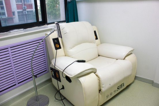 音乐放松室拥有音乐放松椅、心理健康自助仪、AR虚拟投射互动宣泄系统、体感音波床等专业心理健康辅助设备。音乐放松椅让个体坐在上面,通过聆听音乐的旋律和节奏逐渐缓解化解焦虑、抑郁等不良情绪,消除和缓解紧张,促进身心的放松;心理健康自助仪既可以帮助个体通过自测量表测量自己的心理健康状况,也可以帮助个体通过观看视频或聆听音乐放松心情;AR虚拟投射互动宣泄系统,融合心理游戏放松理论,采用计算机视觉技术和多媒体投影显示技术,营造一种似真亦幻的动感的现代化全新的交互式互动体验,将来访者与屏幕之间互动起来,进而帮助来访者达到放松情绪的目的;体感音波床以音乐放松催眠训练为主,结合智能音乐放松系统进行呼吸训练、心理视频、音乐放松、不同频率音乐实现与人体生理波谐振,实时诱导大脑α波,根据放松、催眠引导语暗示,实现身心放松同时感受躯体放松,是集音乐放松训练及身心、躯体放松为一体的全新音波催眠设备。