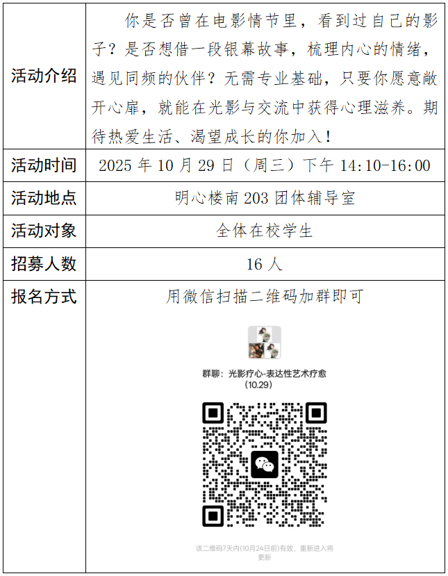 活动主题三:光影疗心-表达性艺术疗愈团体辅导