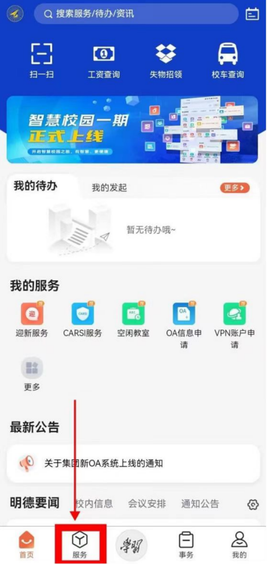 (1)登录“雷竞技raybet登录入口融合服务门户”,点击下方“服务”。