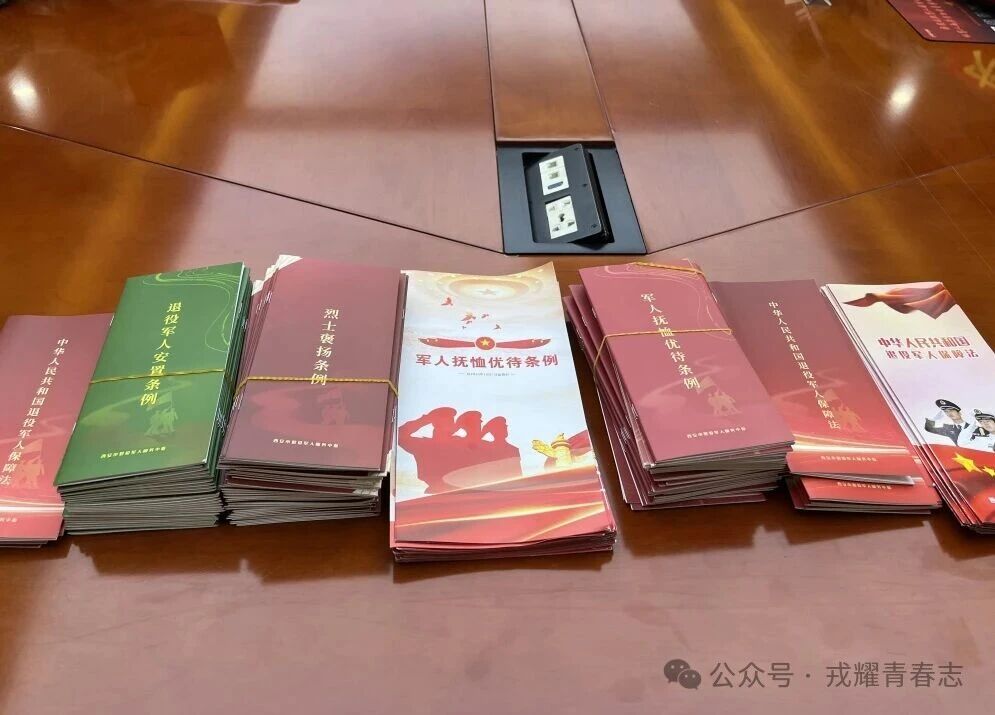 同时,《中华人民共和国退役军人保障法》《烈士褒扬条例》《军人抚恤优待条例》等一本本政策法规手册整齐摆放,涵盖退役军人权益保障、抚恤优待等多方面内容,为师生全面了解政策搭建了“知识窗口”。