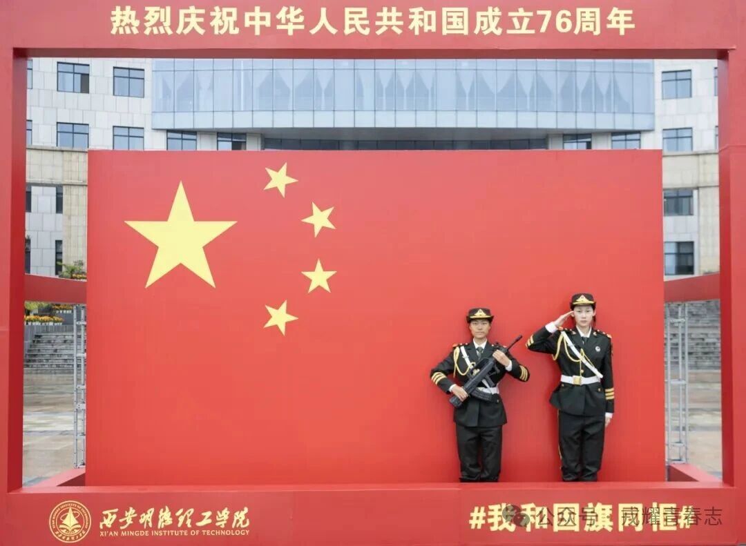 清晨的校园,空气清新,国旗护卫队身着礼服,精神饱满,迈着铿锵有力、威武整齐的步伐护送鲜艳的五星红旗迈向旗台,用一场庄严的升国旗仪式,为祖国母亲献上最真挚的祝福。全场师生肃立,行注目礼,高唱国歌,向冉冉升起的国旗致以崇高的敬礼,表达着对伟大祖国的挚情热爱和美好祝福,共同庆祝中华人民共和国成立76周年!