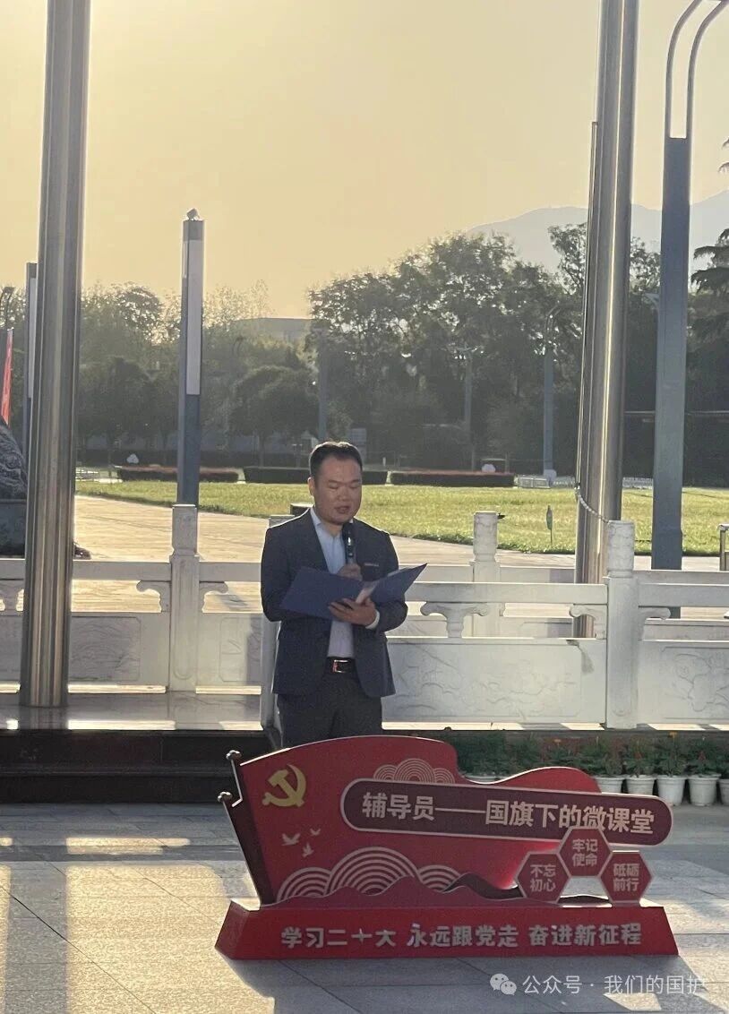 升旗仪式结束后,智能制造与控制技术学院党委副书记曾凯老师在国旗下的微课堂中,以“从捍卫和平到智造未来”为主题,为师生们带来深刻分享。