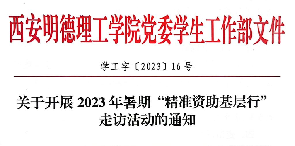 按照《陕西省教育厅办公室关于开展2023年“精准资助基层行”走访活动的通知》要求,为进一步提升学生教育管理服务工作,落实学生资助政策,切实了解家庭经济困难学生实际情况,提高资助政策知晓率和满意度,现决定在全校范围内开展“精准资助基层行”走访活动。
