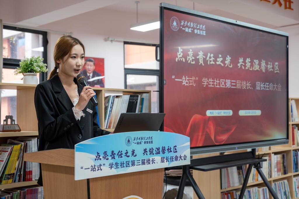 楼层长作为“一站式”学生社区管理和服务的骨干力量,是学生社区治理的重要抓手,此次任命大会有助于楼层长明晰自身工作职责、激发创新活力,我们共同期待新一届楼层长们在新的任期内,能够以更加积极的姿态参与到学生社区服务与管理中,在实践锻炼中,不断为构建和谐、文明的学生社区贡献力量,共同缔造“一站式”学生社区综合育人和全域管理新格局。