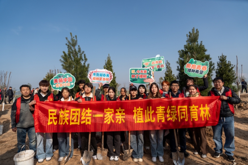 为加强民族团结教育,铸牢中华民族共同体意识,3月9日,学校组织20余名各民族青年学生代表赴咸阳市兴平市,参与“美丽中国·青春行动”2026年陕西省青少年植树护绿省级集中活动。党委学生工作部、校团委相关老师,新疆派驻教师克力木·吐鲁干,以及来自新疆等地的少数民族学生与汉族学生代表并肩协作,在挥锹铲土、扶苗浇灌的共同劳动中增进交流、加深情谊,以实际行动践行“绿水青山就是金山银山”理念,在黄河流域生态保护一线绘就民族团结的青春画卷。