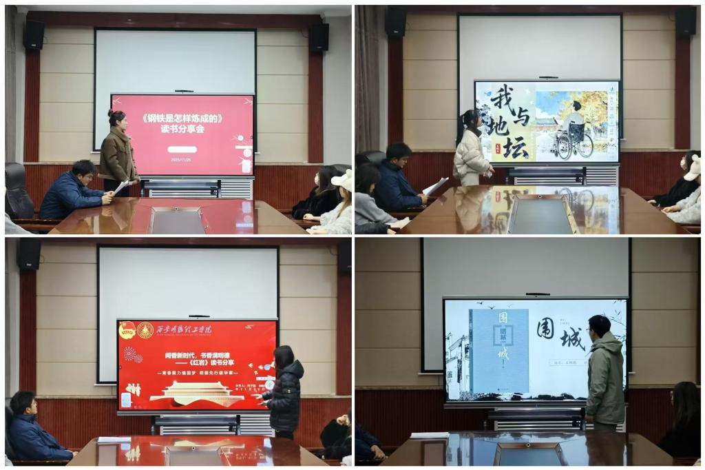 分享环节学生代表结合自身阅读体验与思考,分享了触动心灵的书籍与感悟。毛漪洋同学分享了《红星照耀中国》,带领大家重温了那段波澜壮阔的革命岁月,深刻感悟中国共产党人的理想信念与奋斗精神;刘花同学带来的《信仰的力量》,阐述了坚定信仰对于个人乃至民族发展的巨大推动作用;袁媛同学对《为什么是中国》的解读,引发了大家对国家发展道路与历史性成就的深入思考;刘子怡同学深情分享了《红岩》,革命先烈的坚贞不屈与英勇献身精神深深感染了在场听众;陶悦同学交流了阅读《我与地坛》的体会,从史铁生先生对生命意义的深邃思考中获得了深刻启示。王鹤鹏同学对《围城》中人物命运与时代背景的剖析,展现了其对经典文学作品的独到见解;李盼盼同学分享了《钢铁是怎样炼成的》,再次唤起了大家对保尔·柯察金坚韧不拔意志的敬佩;周佳同学带来的《苦难辉煌》,系统回顾了中国共产党领导人民历经磨难走向辉煌的伟大历程。现场同学在书籍中共同传承红色基因、探讨人生意义,思想的火花在交流中频频碰撞。