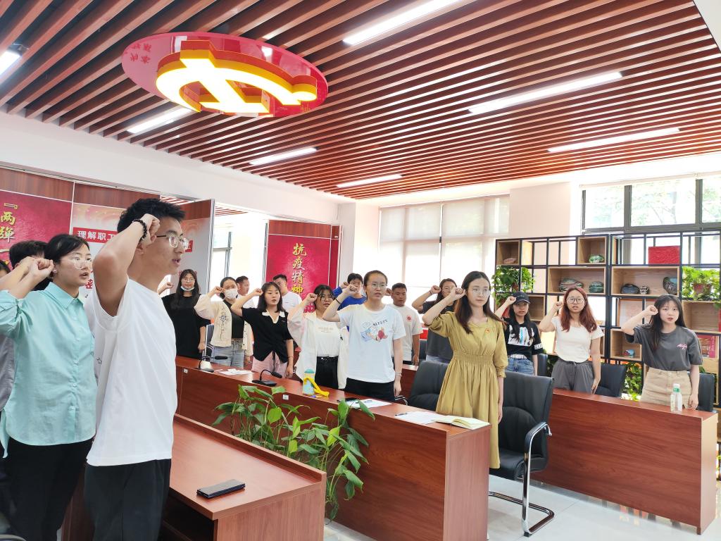分享结束后,全体党员在支部书记许柔的带领下,面向党旗、举起右拳,集体重温入党誓词,进一步坚定初心使命,凝聚奋进力量。