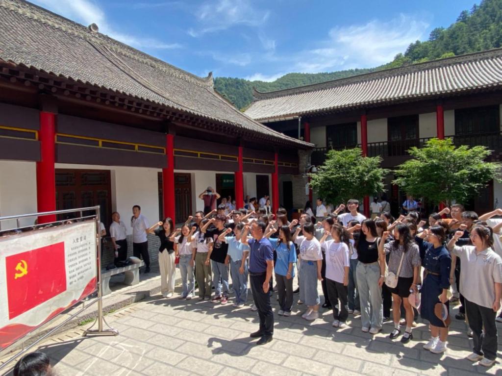 为庆祝中国共产党成立102周年,进一步强化党员身份意识,增强光荣感、责任感和使命感,落实主题教育“学思想、强党性、重实践、建新功”的总要求,从红色文化中汲取奋进力量。6月25日上午,信息工程学院组织全院40名新入党党员赴蓝田县葛牌古镇红色教育基地开展“薪火相传迎七一·凝心聚力向未来”主题党日活动。活动由学院党委书记肖千春带队。