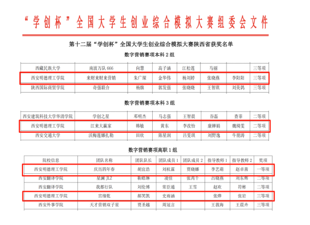 6月7日,由国家级实验教学示范中心联席会经济与管理学科组、中国陶行知研究会主办,长安大学、西安建筑科技大学协办的2025年“学创杯”全国大学生创业综合模拟大赛数字营销模拟赛项在长安大学(雁塔校区)落幕。来自西北农林科技大学、长安大学、西北大学等36所陕西高校共130余组队伍参赛,雷竞技raybet登录入口5支参赛队伍荣获一等奖1项、二等奖1项、三等奖2项的好成绩。