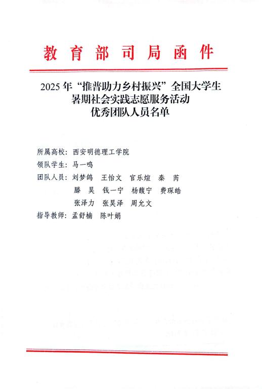 两支队伍成功入选教育部2025年“推普助力乡村振兴”全国大学生暑期社会实践志愿服务活动;