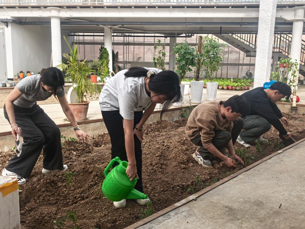 活动开始前,惠斌、樊静两位指导老师向同学们讲解了种植的基本技巧和注意事项。随后,学生们分组协作,松土、挖坑、栽苗、浇水,每一个步骤都认真完成。尽管不少同学是第一次参与农事劳动,动作略显生疏,但大家热情高涨,互相帮助,在实践中逐渐掌握了种植要领。