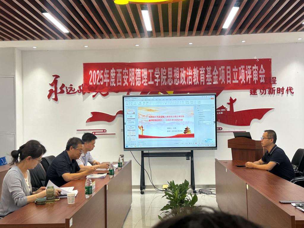 2025年5月29日,学校在明志楼北108会议室组织召开2025年度思想政治工作研究基金项目评审会。特邀西北农林科技大学赵延安教授、西安工业大学梁华平教授和西安理工大学刘玲教授担任评审专家。会议由马克思主义学院副院长惠斌主持。