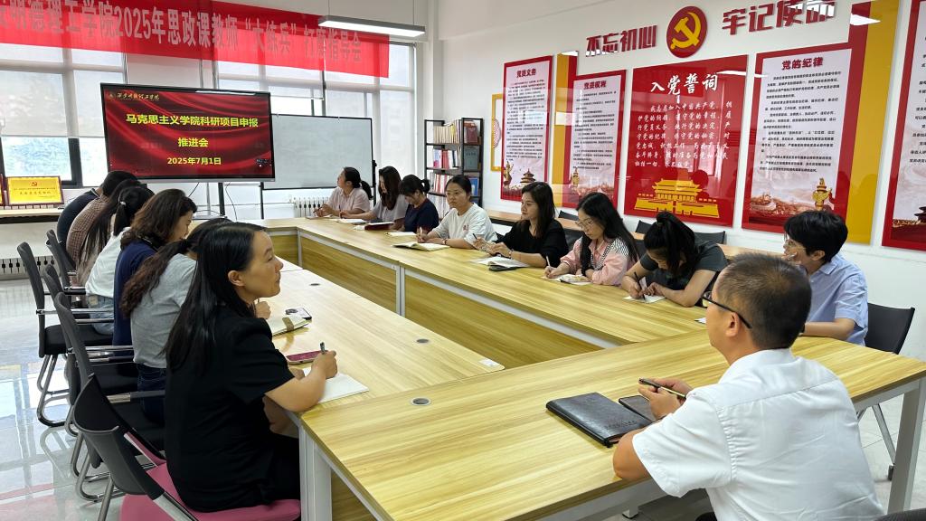 为更好落实学校科研工作要求,切实提升我院科研核心竞争力,集中力量突破科研论文、成果获奖等薄弱环节,7月1日上午,马克思主义学院在明志楼南306会议室召开了科研申报建设推进会。学院领导、各教研室主任和部分教师参加了会议。