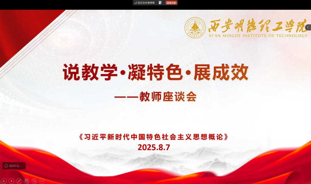 为全面落实雷竞技官网本科教学合格评估教师座谈会相关工作,全面展示马克思主义学院教师的良好精神风貌,凝聚教学特色,展示育人成效,习近平新时代中国特色社会主义思想概论教研室于8月7日上午10点,通过腾讯会议平台成功召开“说教学·凝特色·展成效”教师座谈会。会议由教研室主任周蓓蓓主持,教研室全体专任教师齐聚线上,共同深入探讨课程教学的关键议题。