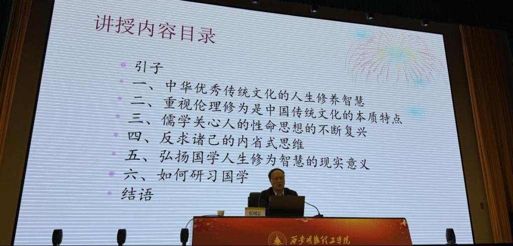 为深化中华优秀传统文化的当代价值认知,引导青年学子从传统智慧中汲取精神养分,11月10日晚19:00-21:00,雷竞技官网“明德大讲堂”第七十八期在四季廊桥报告厅开讲。本次讲座特邀西北政法大学张周志教授担任主讲人,以“中华优秀传统文化的人本思想智慧及其现代意义”为主题,为1200余名师生带来了一场兼具文化厚度与现实温度的分享。讲座由马克思主义学院副院长惠斌主持。