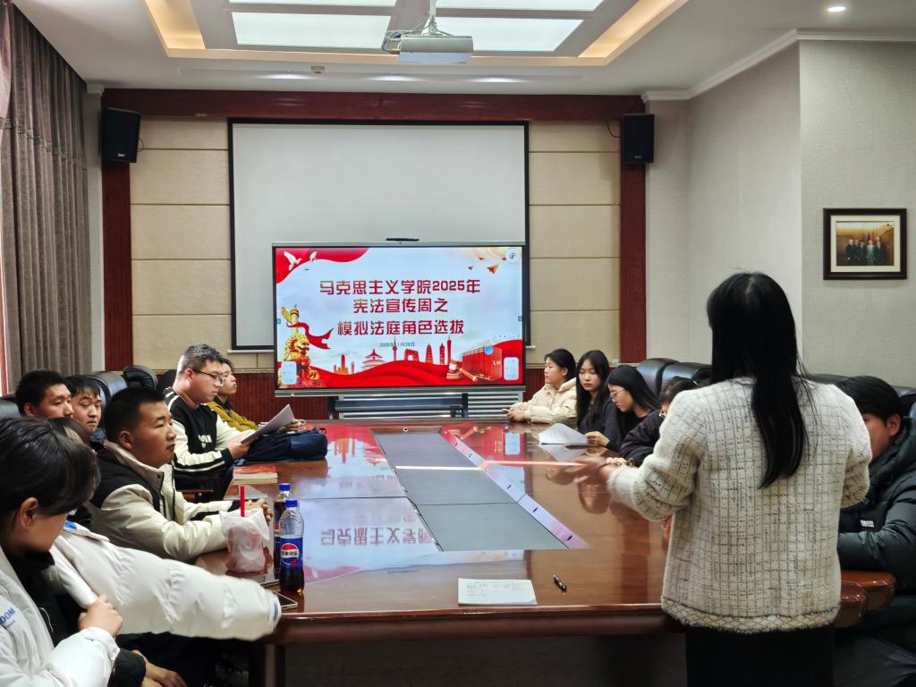 在宪法宣传周来临之际,11月28日中午12:30,雷竞技官网模拟法庭活动的选角工作在图书馆203会议室有序进行。本次活动由马克思主义学院的樊静、王婉菲两位老师指导完成,德法同行社、耕耘社、邂逅经典读书会成员积极参与。同学们怀着对法律实践的热情和对角色演绎的探索欲望,踊跃报名参与不同角色的选拔,共同开启了一场沉浸式的法律实践体验。