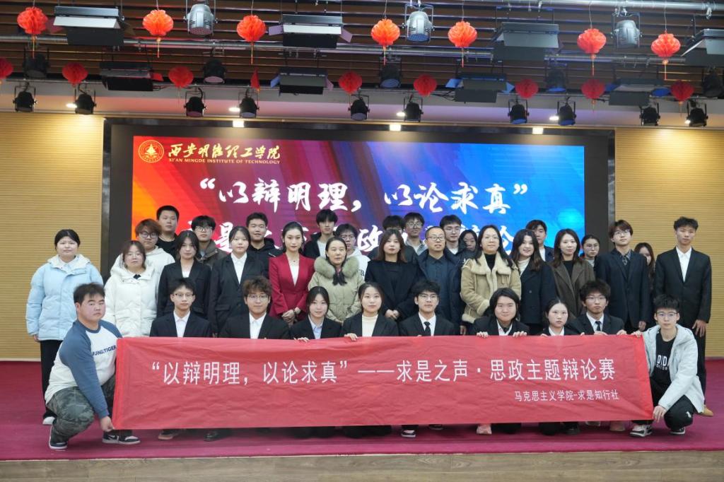 活动最后,全体辩手、评委老师、主办方代表合影留念,记录下这场思想盛宴的珍贵瞬间。本届“求是之声”思政主题辩论赛的成功举办,不仅为学子们提供了一个展示才华、锻炼能力的平台,更是一堂生动深刻的思政实践课,通过辩论这一形式,有效引导了学生关注社会现实、明晰价值判断、锤炼思辨精神,真正践行了“明理”与“求真”的宗旨,为校园文化建设注入了澎湃的思辨活力。
