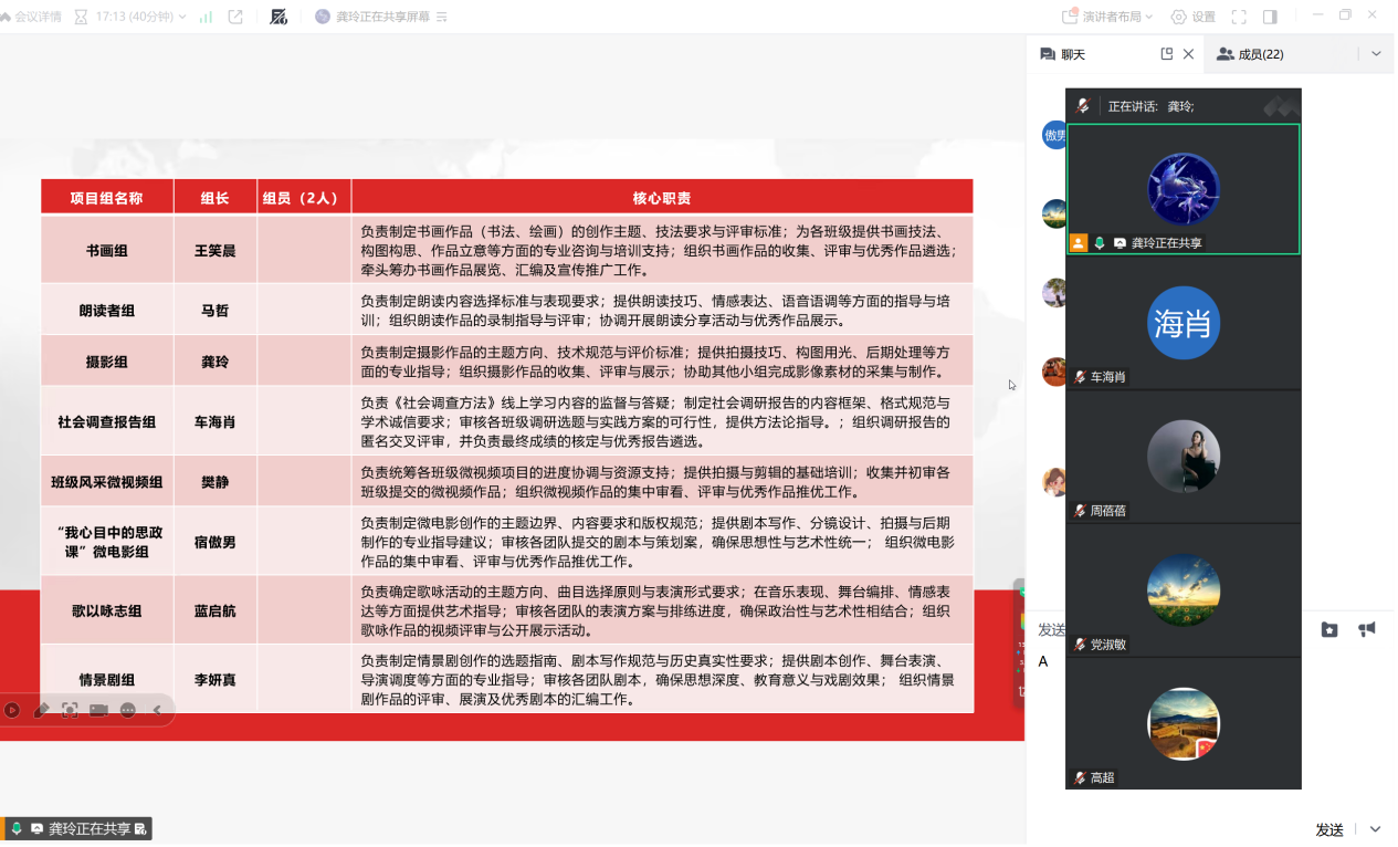 为切实提升《思想政治理论课实践》课程的教学质量与育人成效,推动实践教学向体系化、专业化纵深发展,1月21日晚20时,思想政治理论课实践课程组通过腾讯会议平台召开了备课研讨会。会议由毛泽东思想和中国特色社会主义理论体系概论教研室主任龚玲主持,课程组全体教师参加会议。